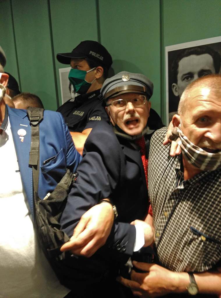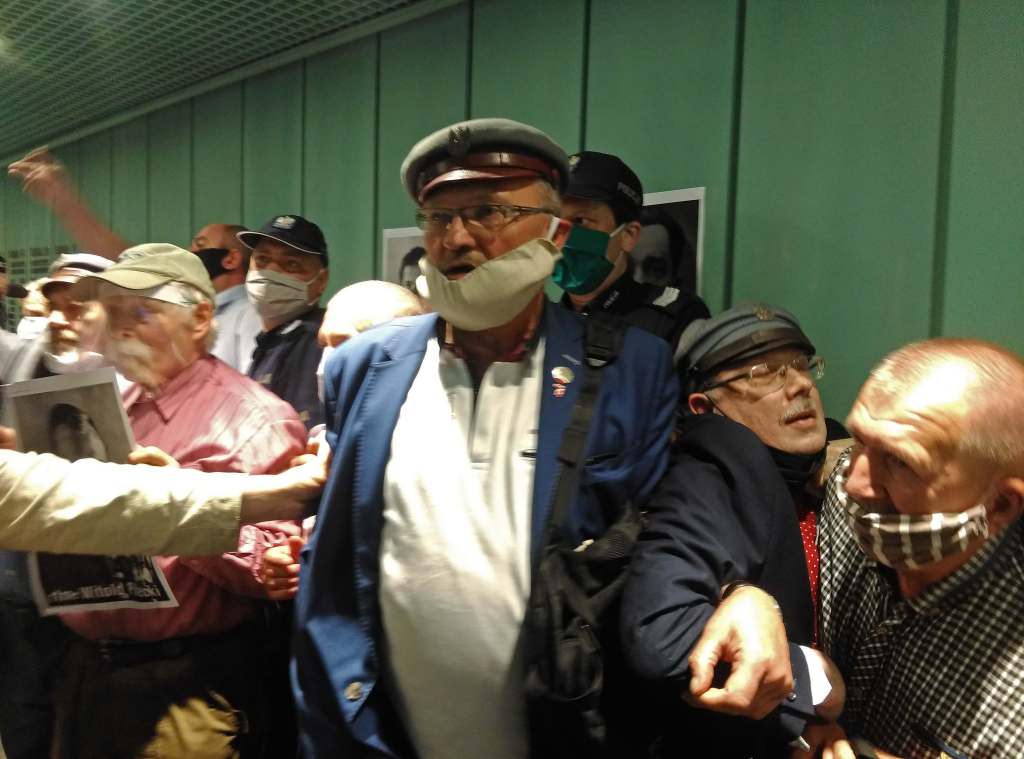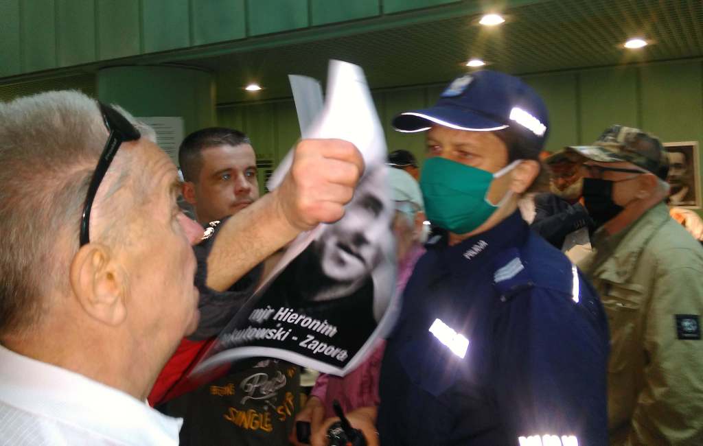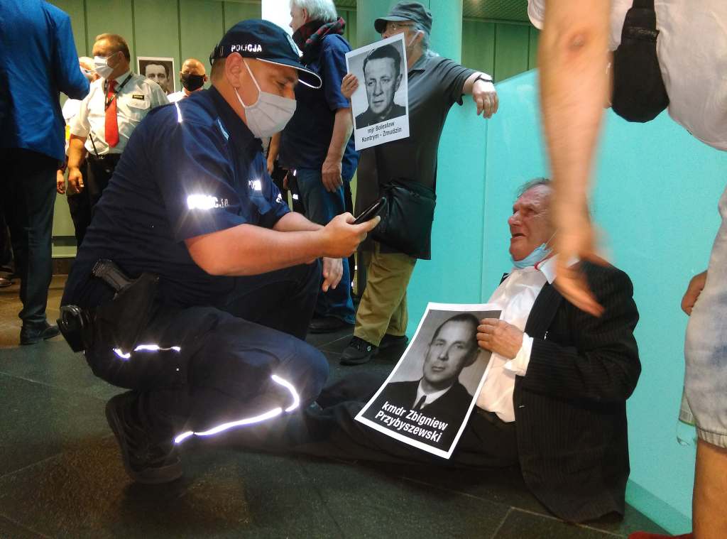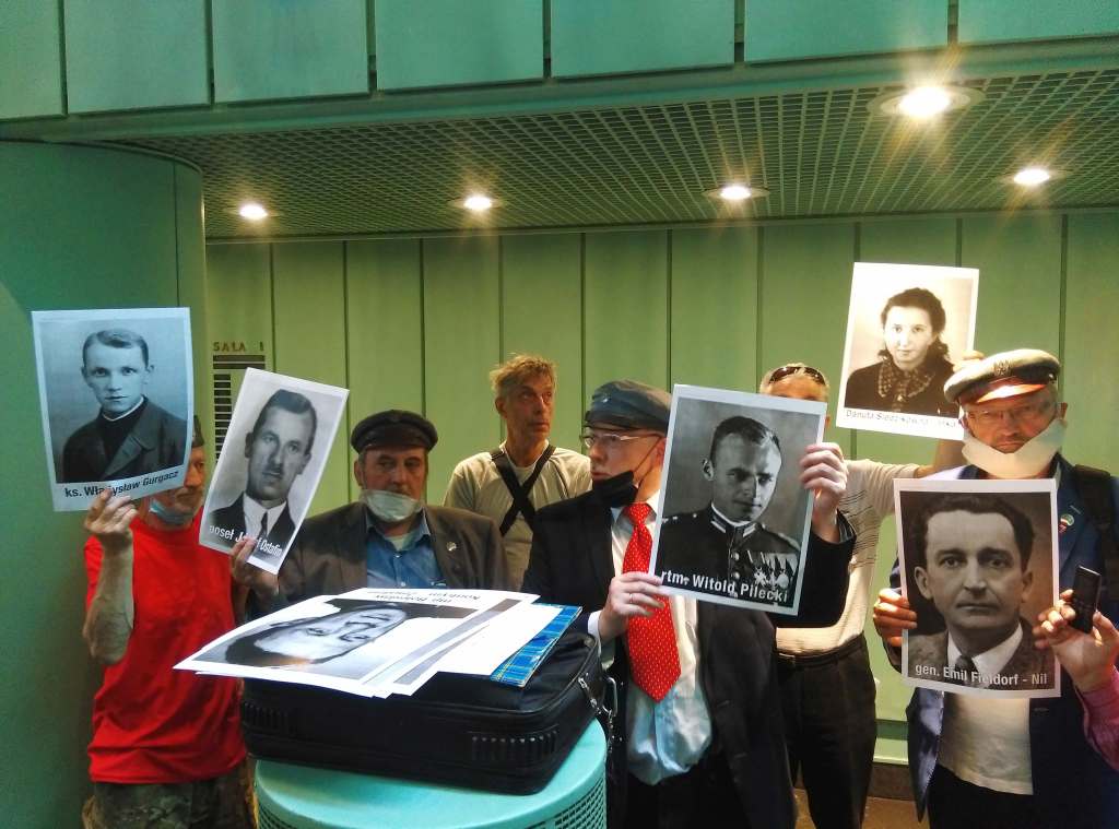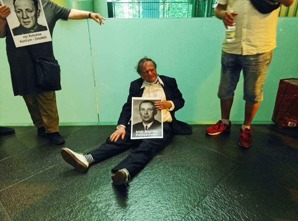 Członkowie Stowarzyszenia Weteranów Walki o Niepodległość Niezłomni oraz Centrum Ścigania Zbrodniarzy Komunistycznych pod przewodnictwem Adama Słomki (na zdjęciu w środku) zorganizowało 17 czerwca akcję wieszania portretów ofiar zbrodni komunistycznych w Sądzie Najwyższym w Warszawie. W galerii sądu, do niedawna eksponowane były fotografie byłych prezesów Sądu Najwyższego, w tym zbrodniarzy reżimu komunistycznego, którzy wydawali wyroki śmierci na przedstawicieli antykomunistycznej opozycji. Stowarzyszenie poprzez liczne protesty doprowadziło do usunięcia w ostatnim czasie portretów tych ostatnich. Dzisiejsza akcja dotyczyła utworzenia galerii niemal 10 tysięcy portretów ofiar komunistycznych zbrodni sądowych z lat 1944-1985. Policja oraz straż sądowa uniemożliwiła powieszenie fotografii, jednak po rozmowach z Adamem Słomką, Małgorzata Manowska Pierwsza Prezes Sadu Najwyższego, zobowiązała się do końca roku utworzyć galerię ofiar komunistycznego sądownictwa. Fot. Grzegorz Klatka/Reporter ———— On June 17, members of the Association of Fighting for Independence and the Center for the Prosecution of Communist Criminals, headed by Adam Slomka (center), organized the hanging of portraits of victims of communist crimes in the Supreme Court in Warsaw. In the court gallery, photographs of former presidents of the Supreme Court, including criminals of the communist regime, who passed death sentences on representatives of the anti-communist opposition were displayed until recently. The association’s numerous protests led to the removal of portraits of communist judges. Today’s action concerned the creation in the Supreme Court a gallery of almost 10,000 portraits of victims of communist court crimes from 1944 till 1985. The police and the court guard prevented hanging photographs, however, after talking with Adam Słomka, Małgorzata Manowska, the First President of the Supreme Court, undertook by Grzegorz Klatka/Reporter